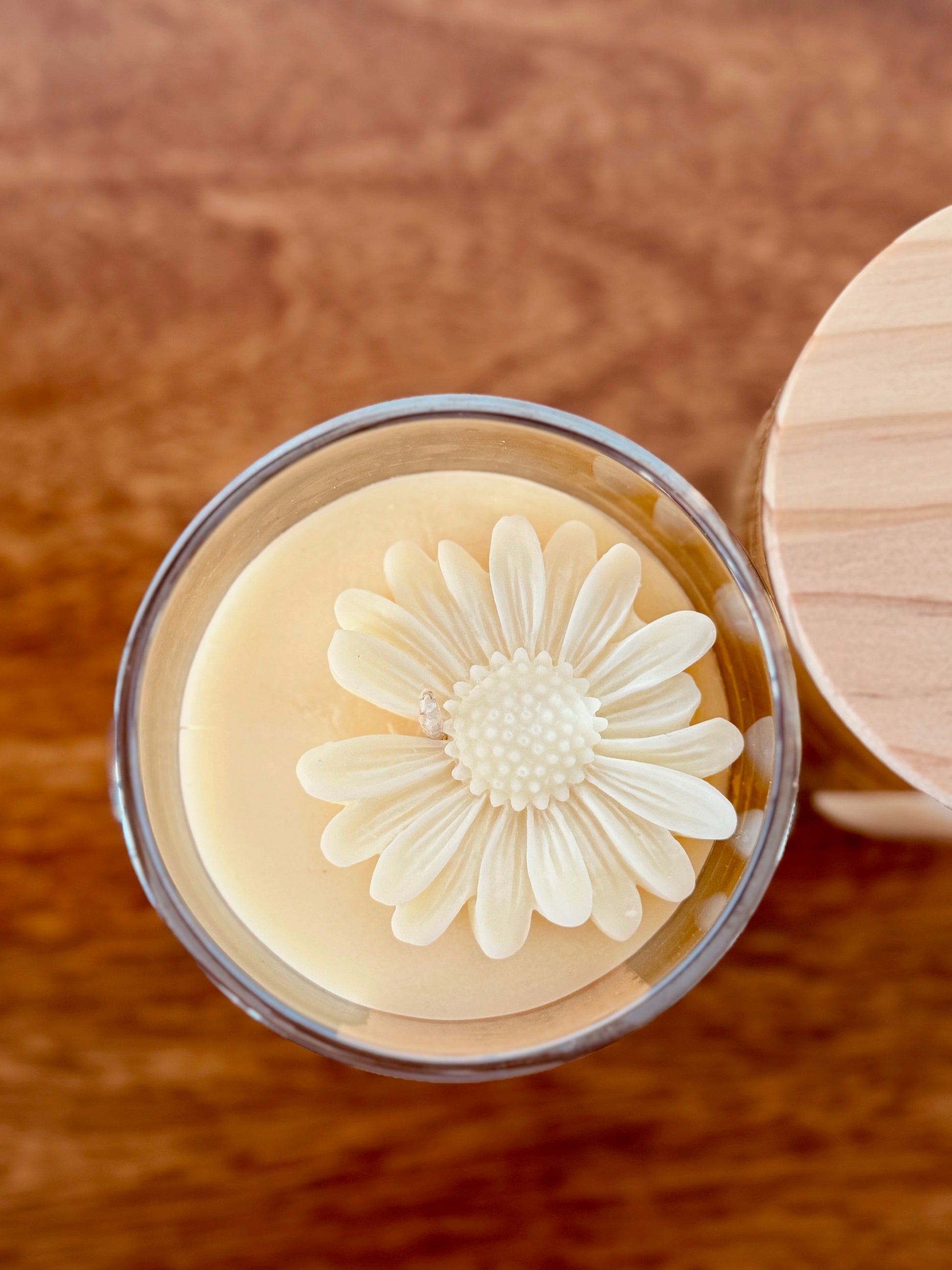 Our candles are always decorated with a beautiful wax flower.